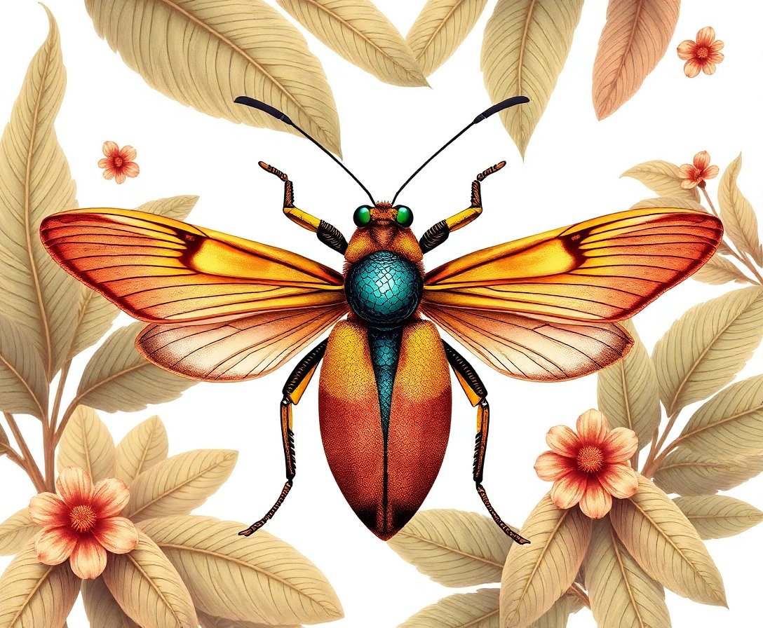 Sepia Tropical Insect Illustration Paint By Numbers