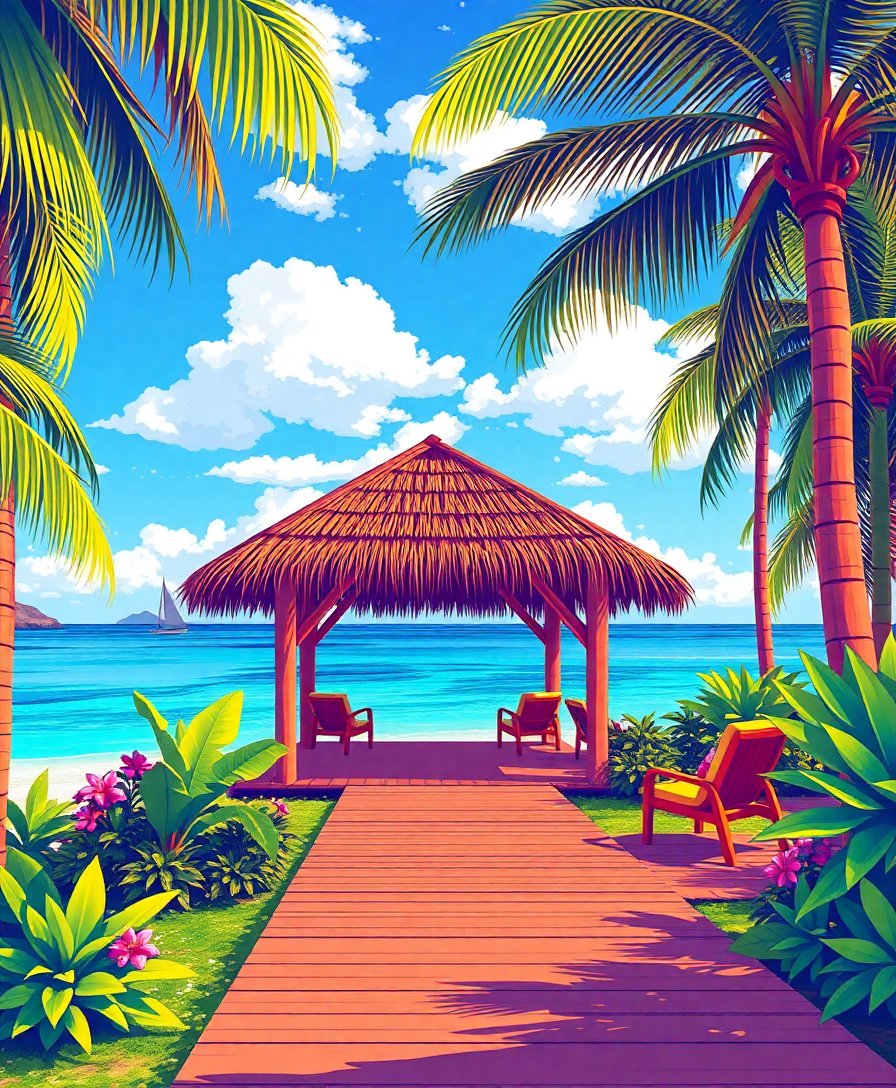 Discover the joy of creating your own tropical paradise today. This Serene Island Cabana Morning paint by numbers kit transforms any afternoon into a peaceful artistic retreat.