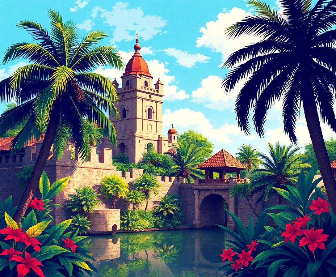 Ultimately, step back and admire your completed tropical fortress masterpiece. Additionally, the interplay of light and shadow brings your bastion to life magnificently. Therefore, your finished piece showcases both artistic skill and historical beauty perfectly.