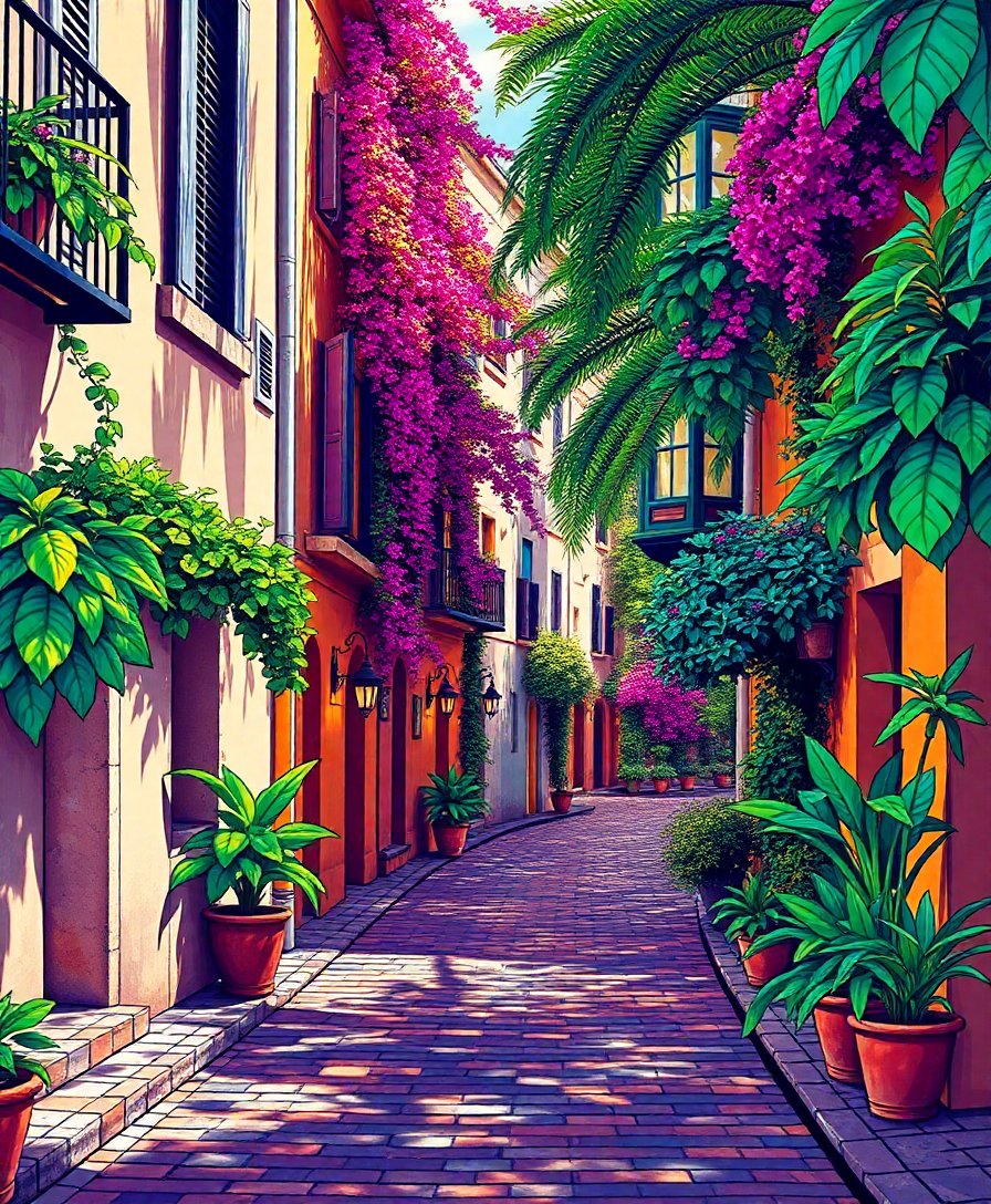 Transform your living space with this captivating Shadowed Tropical Mosaic Street Paint By Numbers kit. This stunning artwork captures the enchanting beauty of cobblestone pathways adorned with intricate mosaic patterns. Every brushstroke reveals tropical shadows dancing across weathered stones, creating a masterpiece that brings world scenes directly into your home.