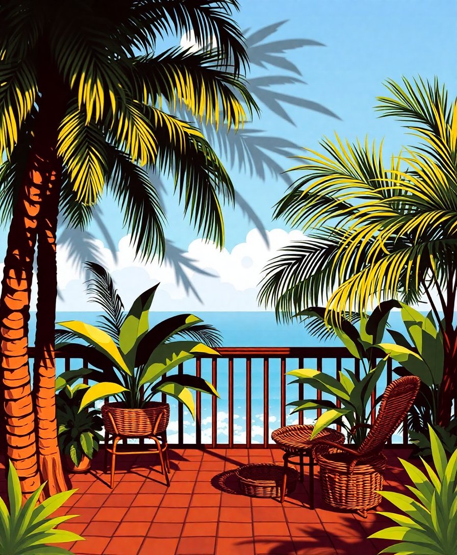 Transform your space with the stunning Shadows Over Tropical Wicker Paint By Numbers kit. This captivating design features intricate wicker textures beneath dancing tropical shadows. Moreover, golden sunset hues create a perfect harmony with lush foliage silhouettes.