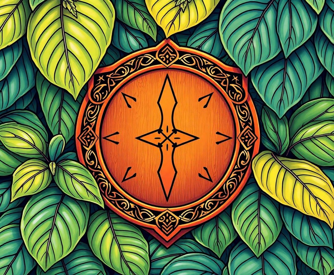 Shield Beneath Tropical Leaves Paint By Numbers