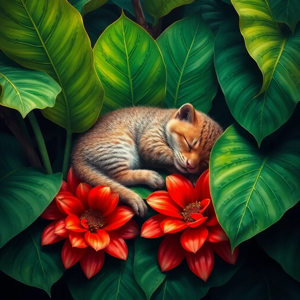 Transform your space into a tropical sanctuary with this enchanting Sleeping Beneath Papaya Leaves paint by numbers. This serene design captures the peaceful essence of resting under nature’s canopy. Each brushstroke brings you closer to creating your own slice of paradise.