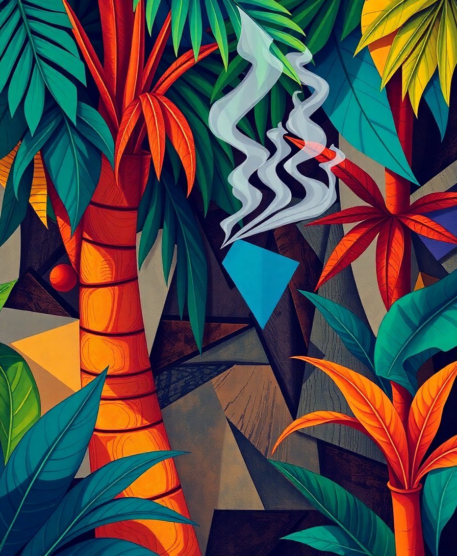 Transform your space with this captivating Smoking Tropical Cubist Rattan Paint By Numbers masterpiece. This extraordinary design blends geometric cubist elements with lush tropical motifs, creating a sophisticated artwork that brings retro elegance to any room. Furthermore, the emerald tones and faceted patterns add depth and visual intrigue to your creative journey.