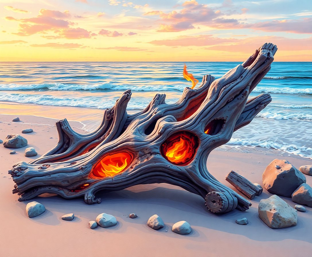 Transform your living space with the captivating beauty of weathered coastal wood through this Smoldering Seaside Wood Embers Paint By Numbers kit. This stunning artwork captures the essence of sun-bleached driftwood glowing against twilight skies, bringing serene ocean vibes into your home.