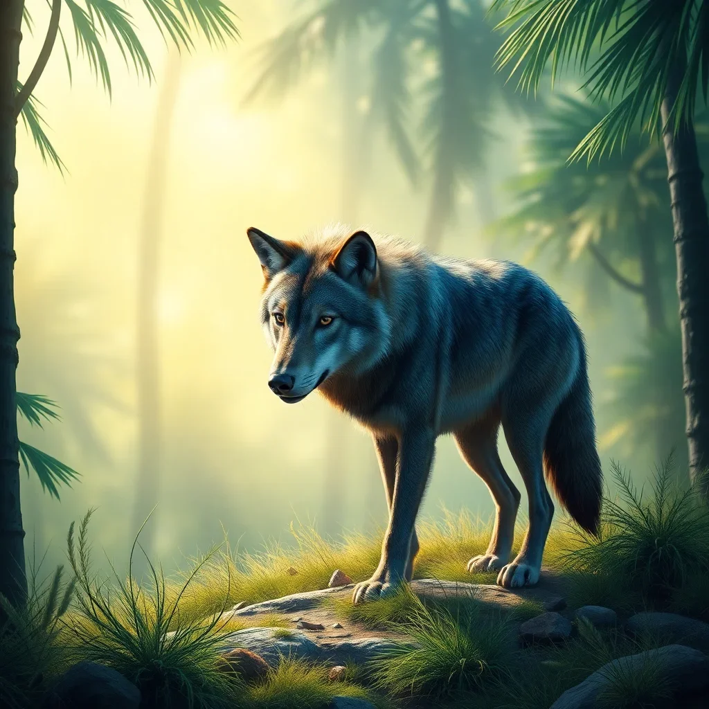 The high-quality linen canvas measures perfectly for wall display, providing ample space to showcase the intricate wolf and palm trail details while maintaining excellent paint adhesion.