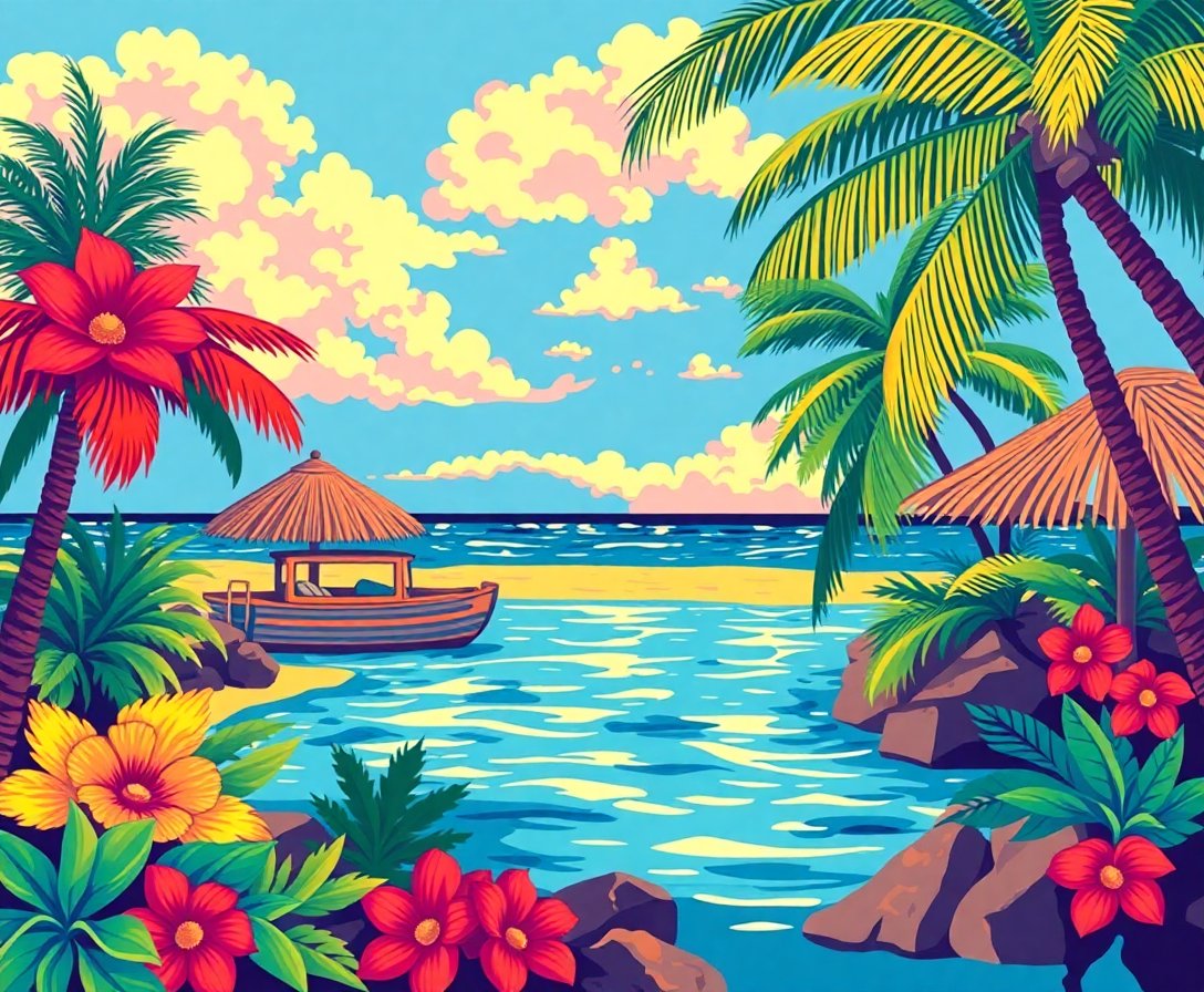 Ultimately, step back and admire your completed masterpiece. Furthermore, the finished artwork radiates warmth and nostalgic charm. Indeed, you’ve created something truly special that captures the island atmosphere perfectly.