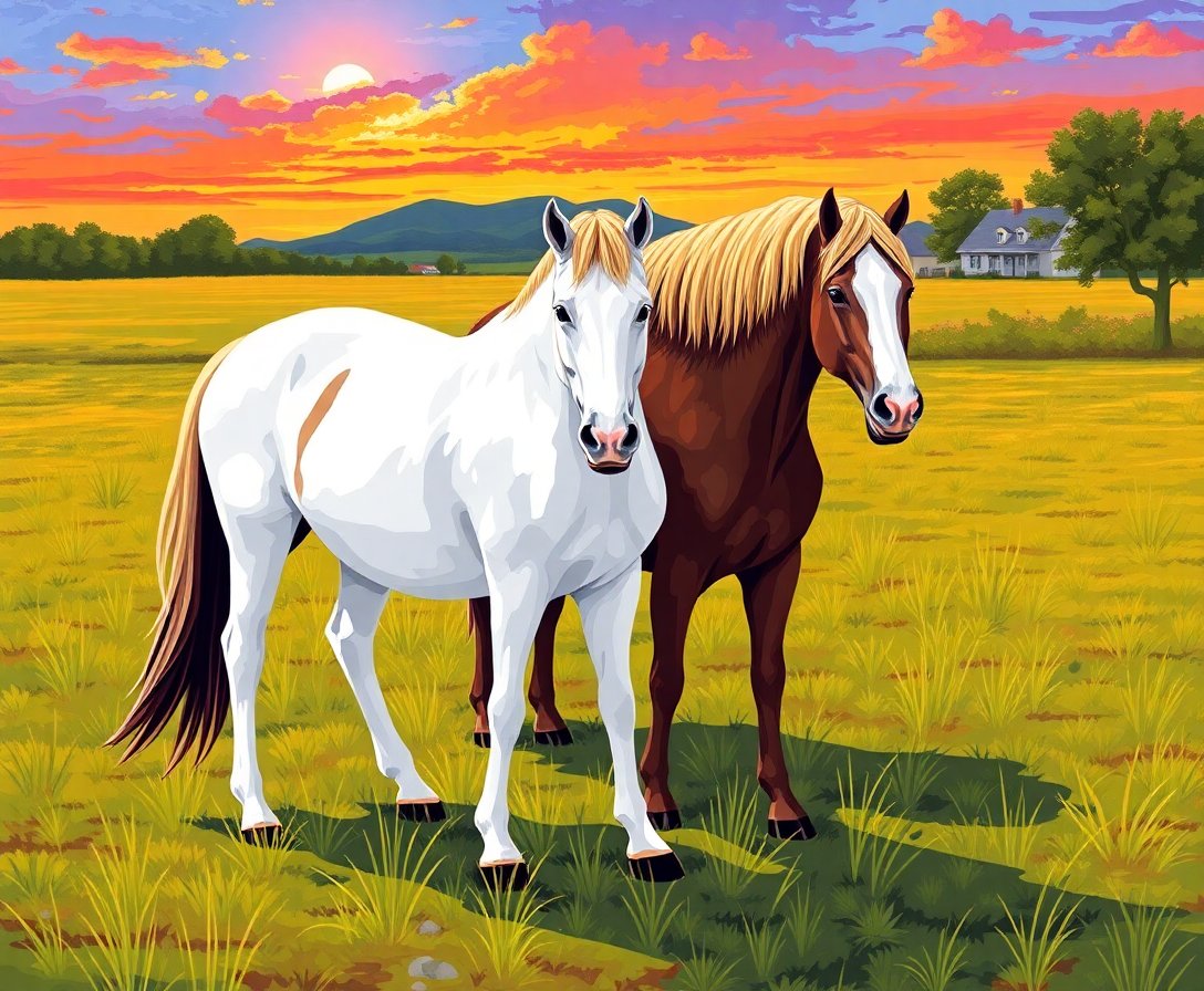 Ultimately, step back and admire your completed masterpiece. Furthermore, the realistic details of grazing horses create stunning visual impact. Additionally, your finished artwork radiates classic Southern charm.