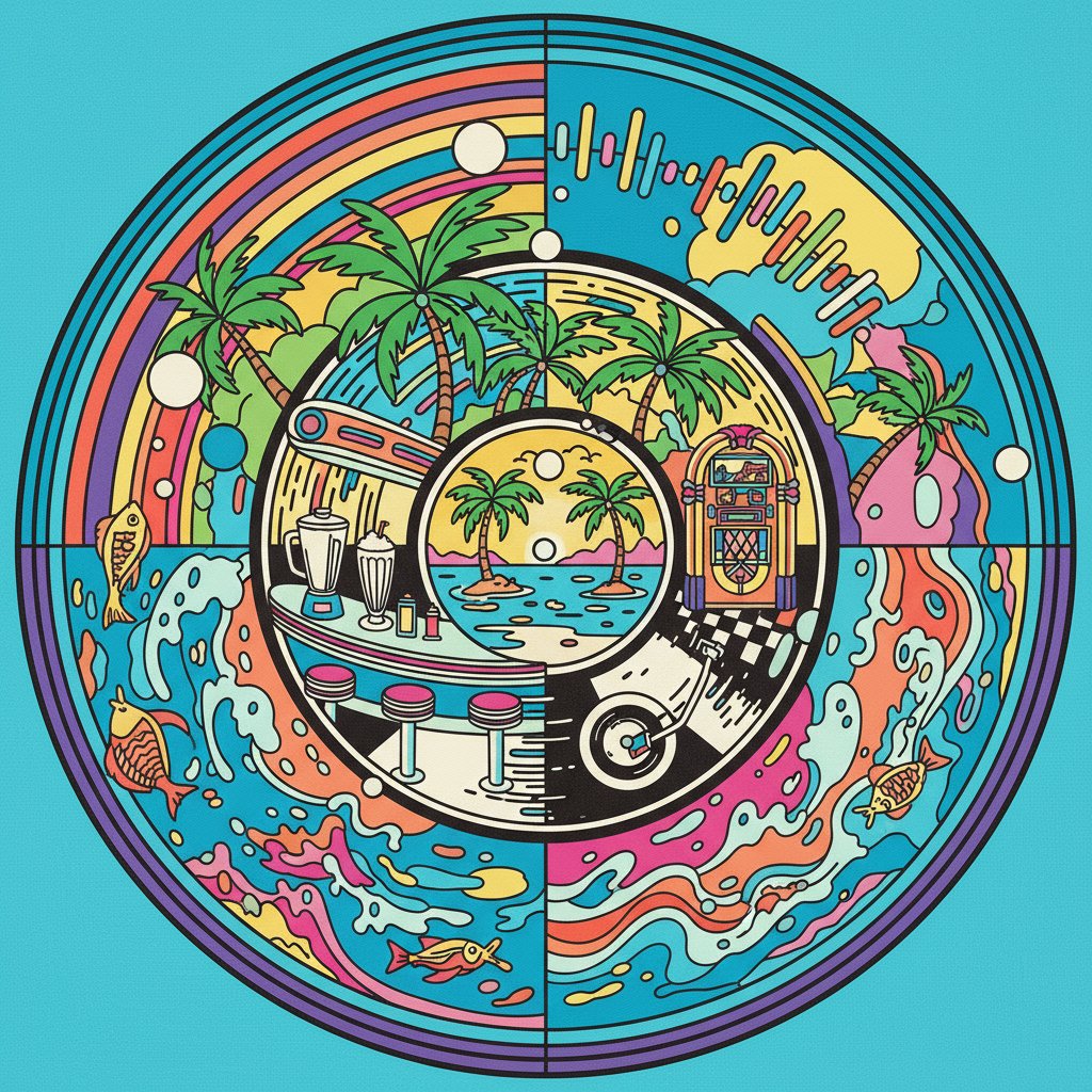 This unique design combines classic diner jukeboxes with tropical elements for distinctive appeal. Premium materials ensure lasting color vibrancy and canvas durability. The realistic detail captures authentic diner ambiance with spinning vinyl and neon lighting effects.