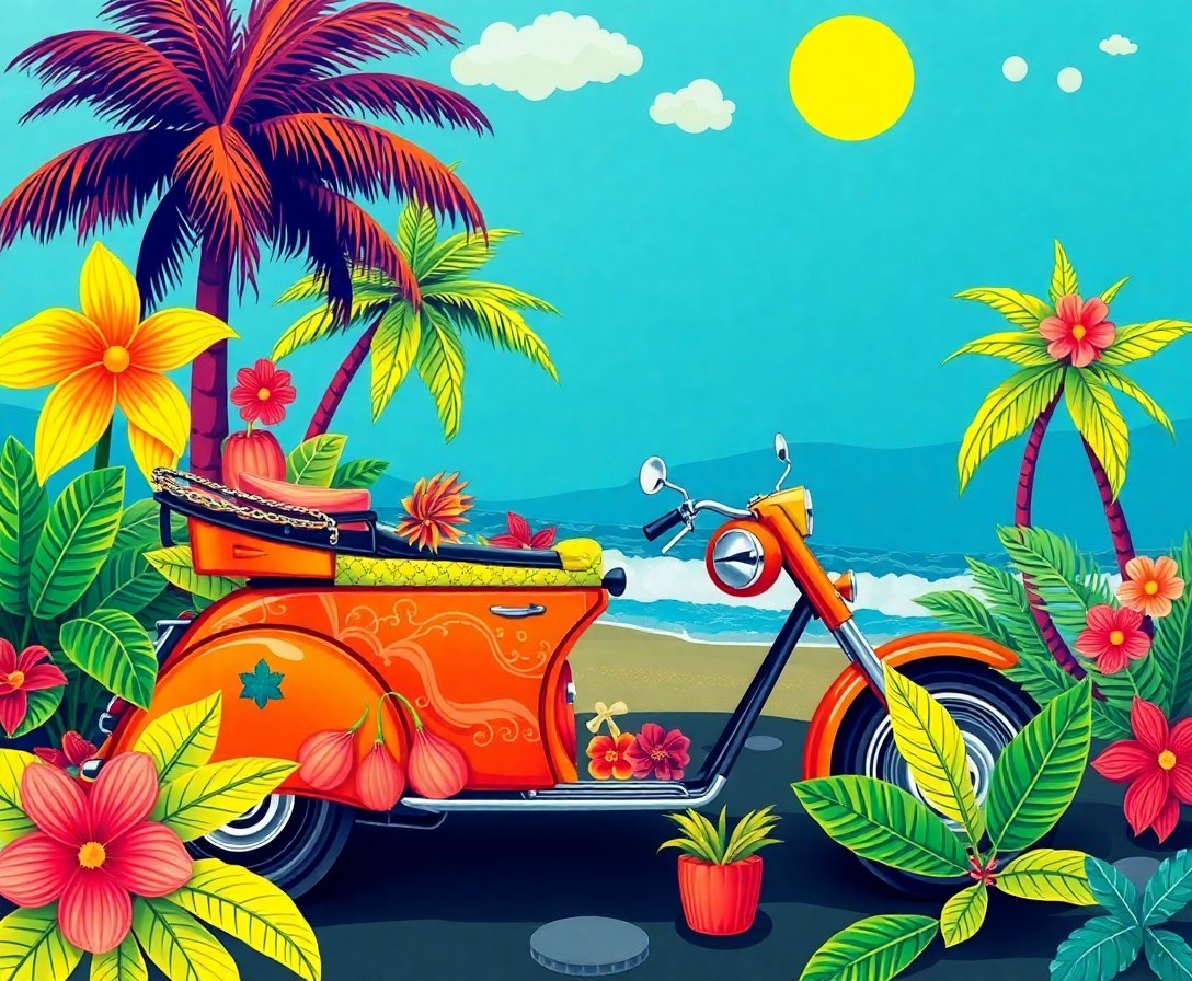 Subsequently, match each numbered section to its corresponding paint color. Work systematically across the canvas. Watch your vintage tropical scene come alive with each brushstroke.