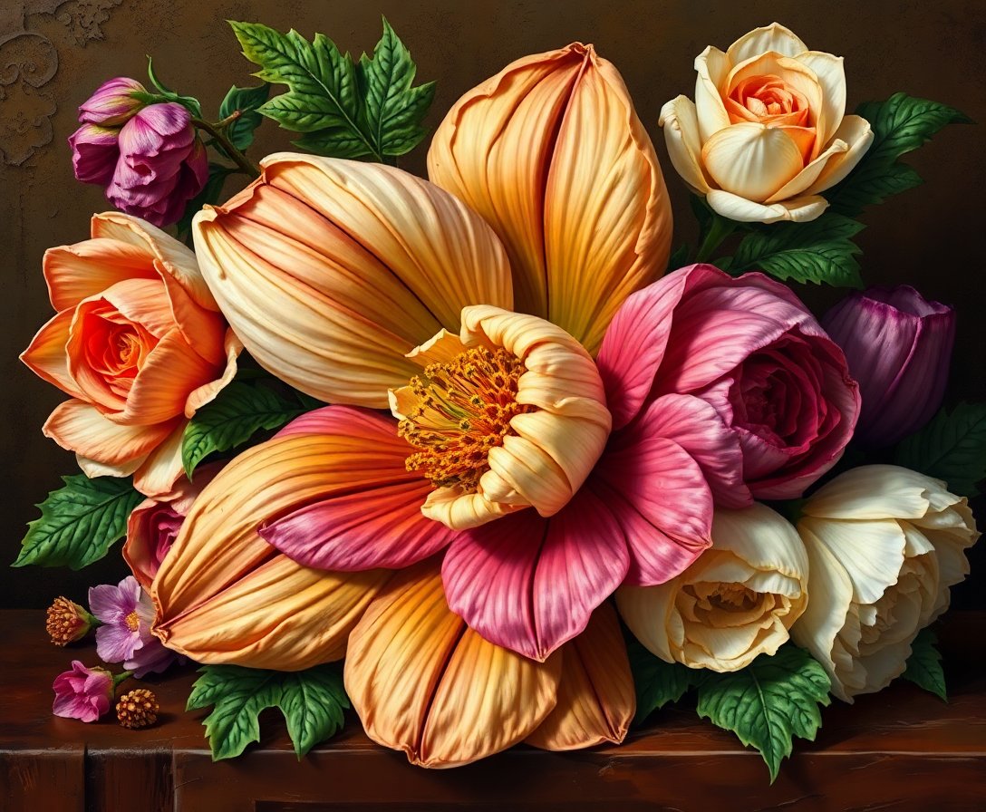 Ultimately, step back and admire your finished baroque masterpiece. The fallen petals now display their full dramatic beauty. Your artistic achievement deserves prominent display in your favorite room.