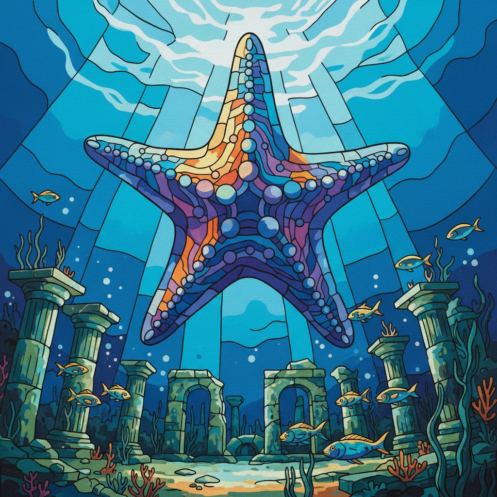 Transform your creative space with this mesmerizing Starfish Over Vintage Ruins Paint By Numbers kit. This captivating design blends marine beauty with ancient mystery. Furthermore, the sepia-toned artwork creates an enchanting underwater archaeological scene.