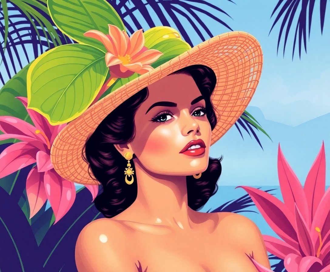 Transform your creative space with the captivating Starlet Under Tropical Fronds Paint By Numbers kit. This stunning artwork captures Old Hollywood glamour beneath lush tropical shadows, creating a cinematic masterpiece that brings retro elegance to any room.