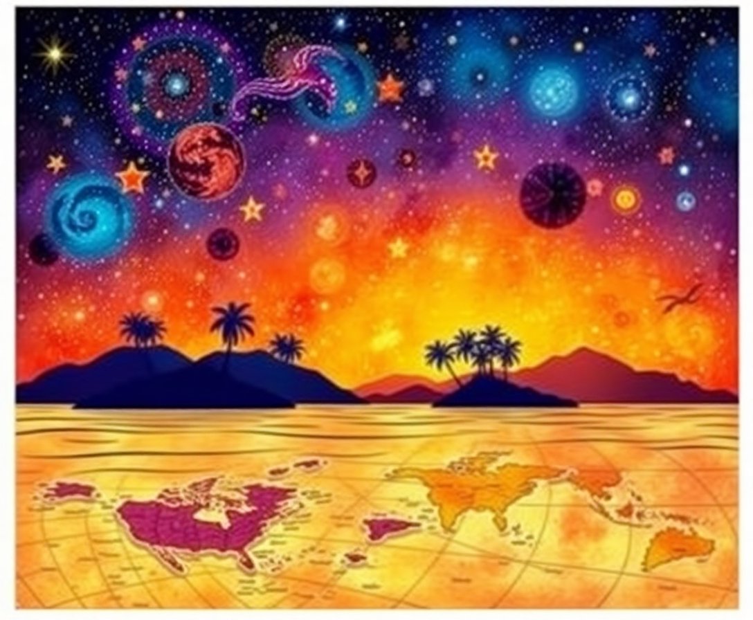 Transform your space with this enchanting Stars Over Tropical Maps Paint By Numbers kit. This celestial masterpiece combines vintage cartography with tropical beauty. Meanwhile, sparkling constellations dance above lush paradise islands.