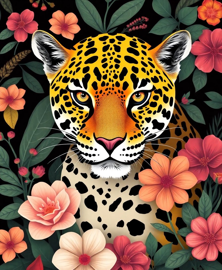Stealthy Jaguar Vintage Flora Paint By Numbers