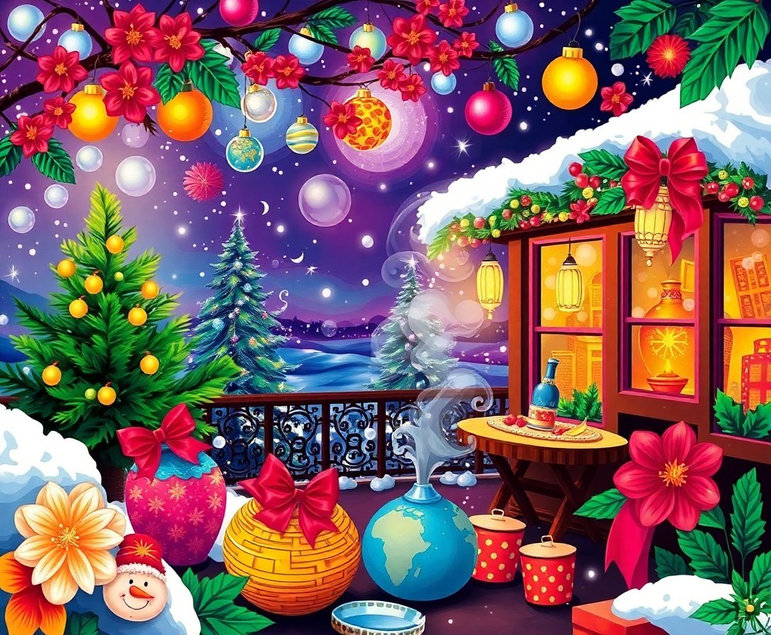 This unique kit combines exotic punchbowl elements with traditional holiday themes, featuring realistic golden steam effects and festive tropical ingredients for distinctive seasonal artwork.