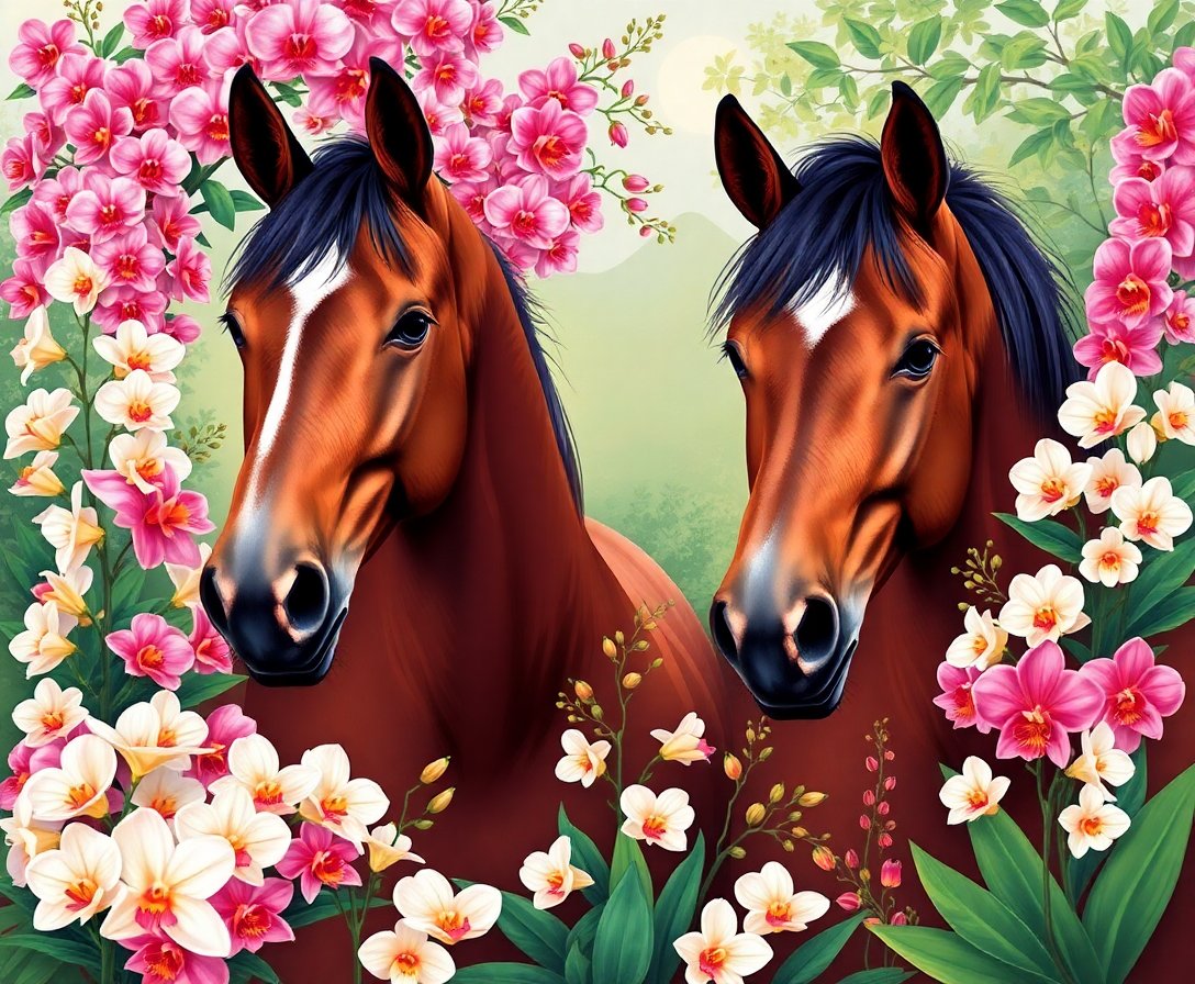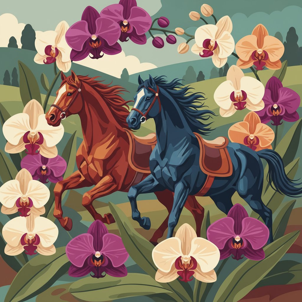 Ultimately, step back and admire your completed heritage masterpiece. The intricate orchids and noble steeds create breathtaking harmony. Moreover, your finished artwork deserves prominent display in any room.
