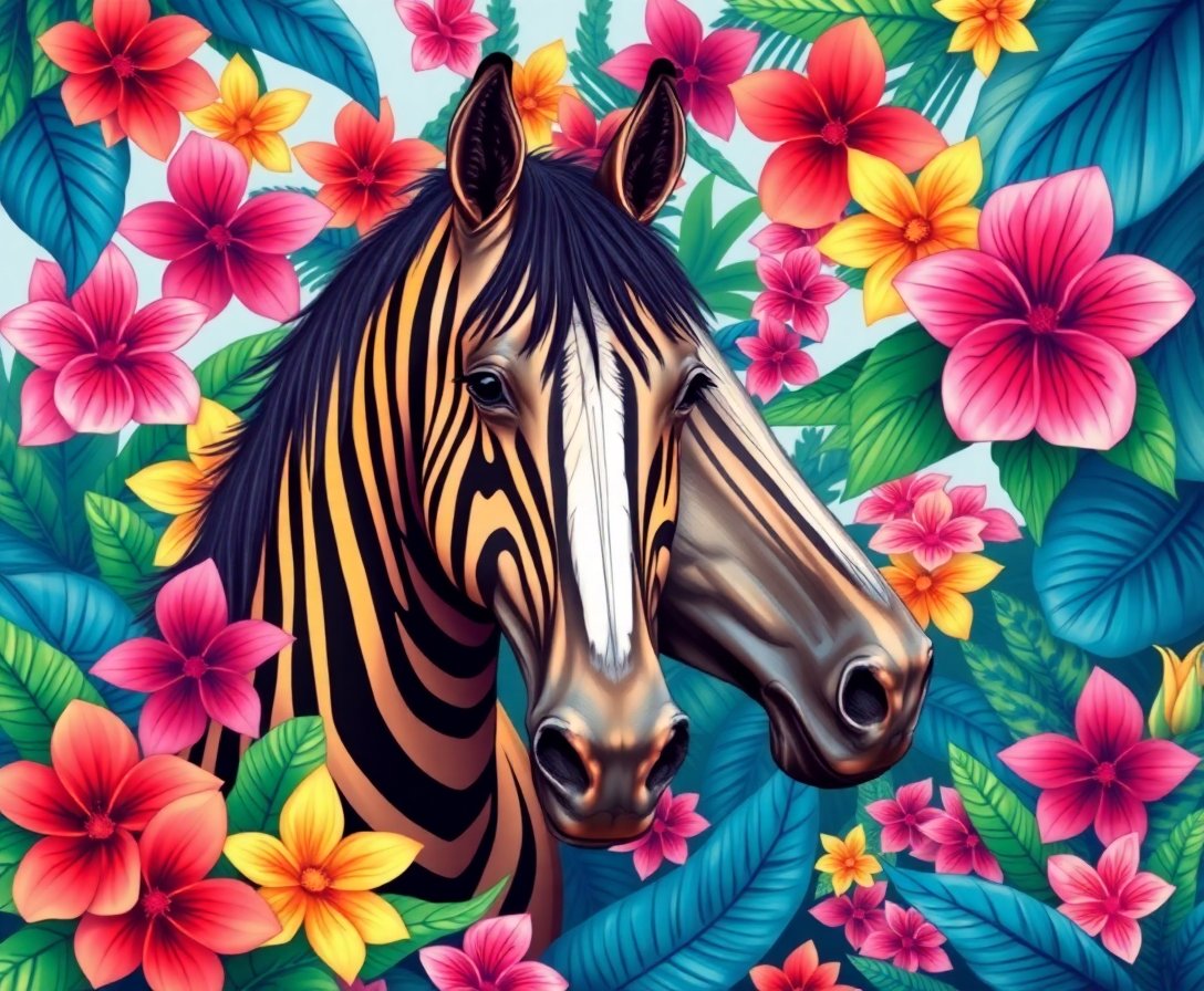 Transform your space with the stunning Stripes Amidst Tropical Blooms Paint By Numbers kit. This captivating artwork combines the bold beauty of zebra stripes with vibrant orange flowers and lush jungle foliage. Additionally, this creative masterpiece offers an immersive artistic journey perfect for any skill level.