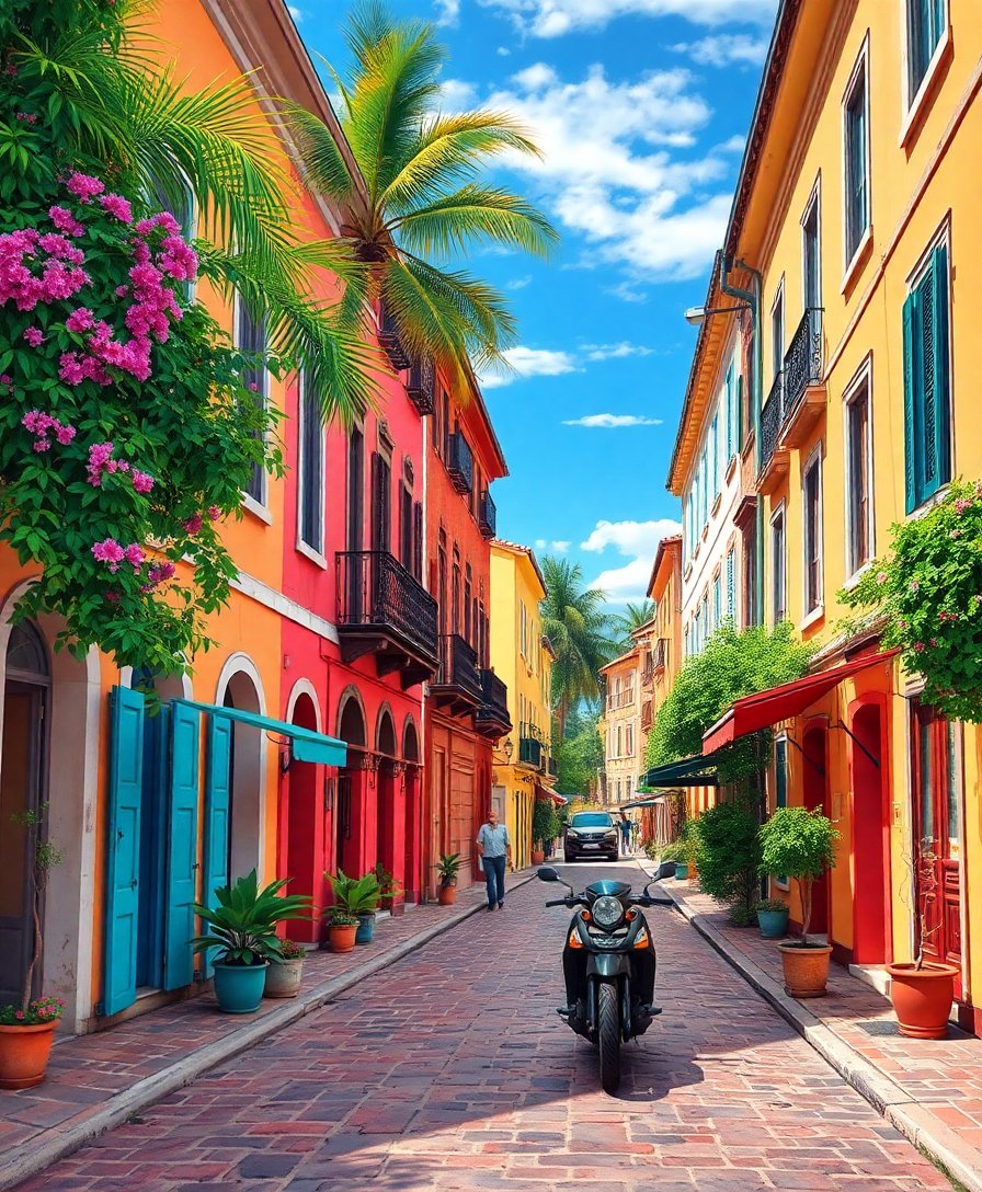 Transform your space with the enchanting Strolling Vintage Tropical Streets Paint By Numbers kit. This captivating design captures the nostalgic charm of cobblestone pathways beneath swaying palms. Experience the magic of creating your own tropical masterpiece.