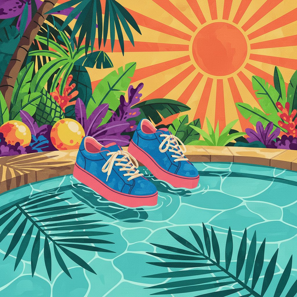 Perfect for sneaker enthusiasts, pop culture fans, and anyone who appreciates vintage aesthetics. The tropical theme makes it an ideal gift for any season.
