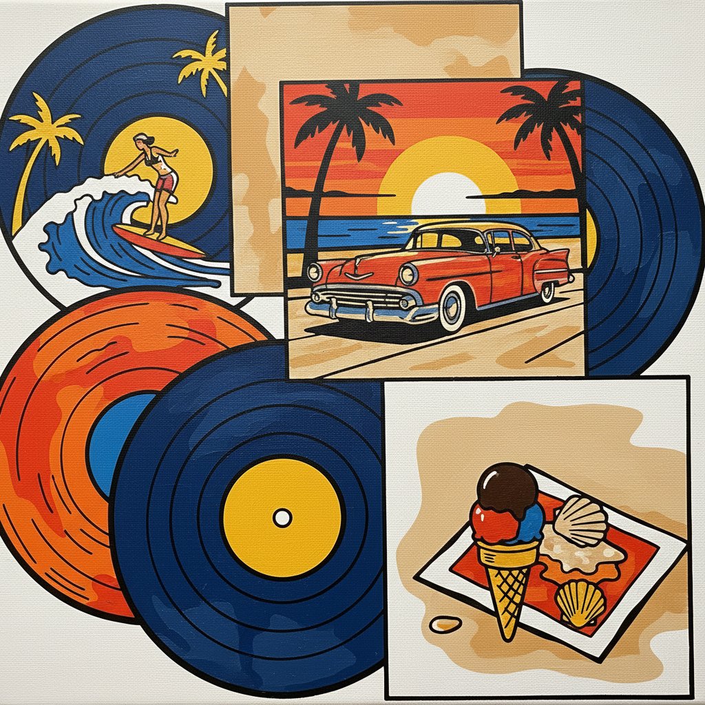 Transform your space with the vibrant nostalgia of the Sunbaked Americana Beach LPs Paint By Numbers kit. This stunning vintage pop art design captures the essence of classic American beach culture. Moreover, it brings together the timeless appeal of vinyl records with coastal charm.