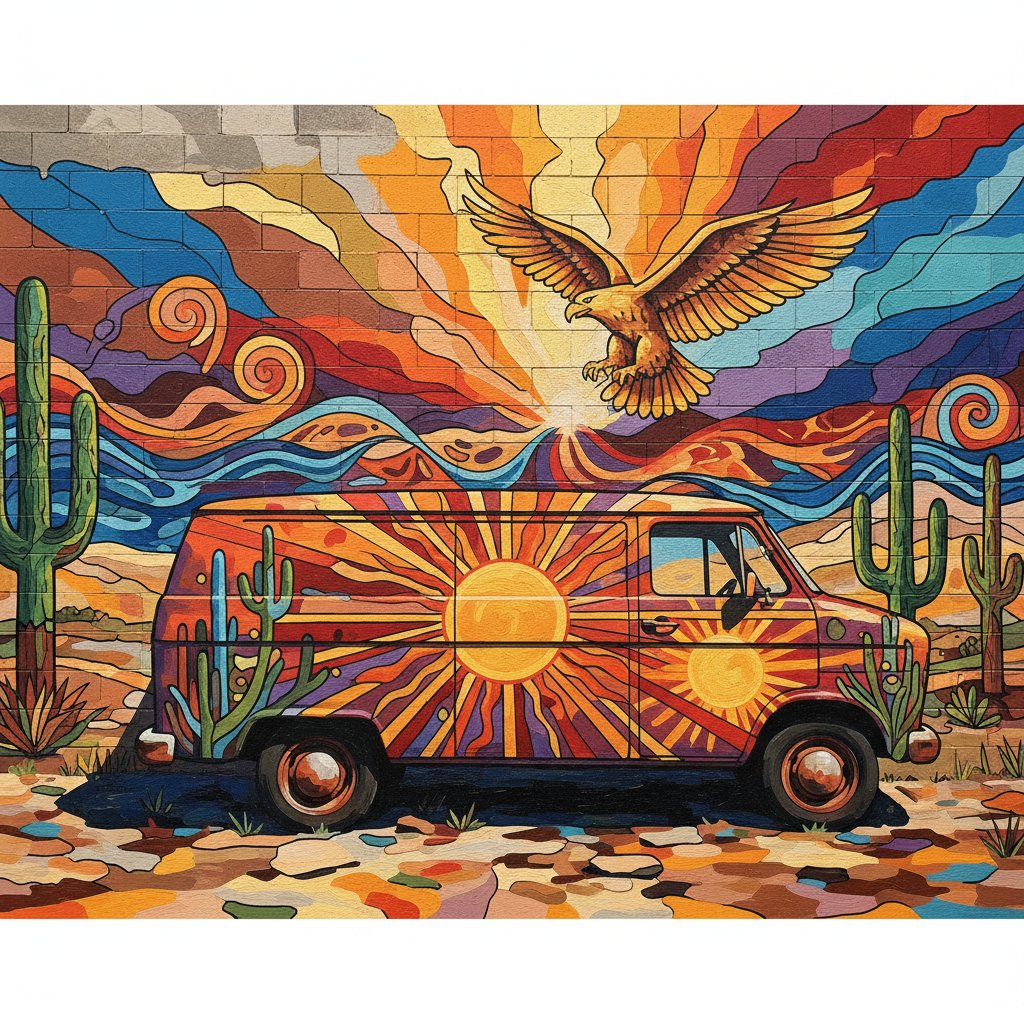 Transform your artistic space with this captivating Sunbaked Cinderblock Van Mural Paint By Numbers kit. This weathered automotive masterpiece captures urban decay with stunning realism. Every brushstroke brings retro charm to life.