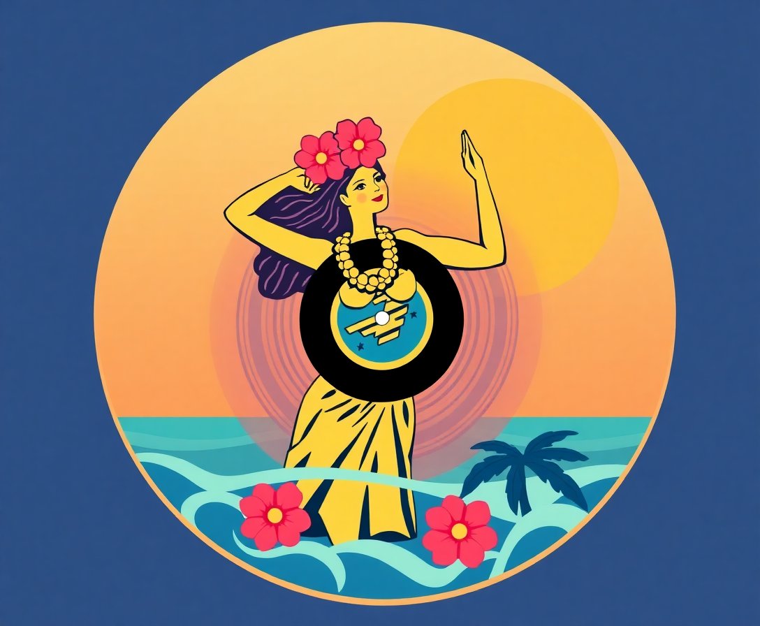 The completed painting measures standard canvas size, perfect for wall display or gifting to vintage music enthusiasts and Hawaiian culture lovers.