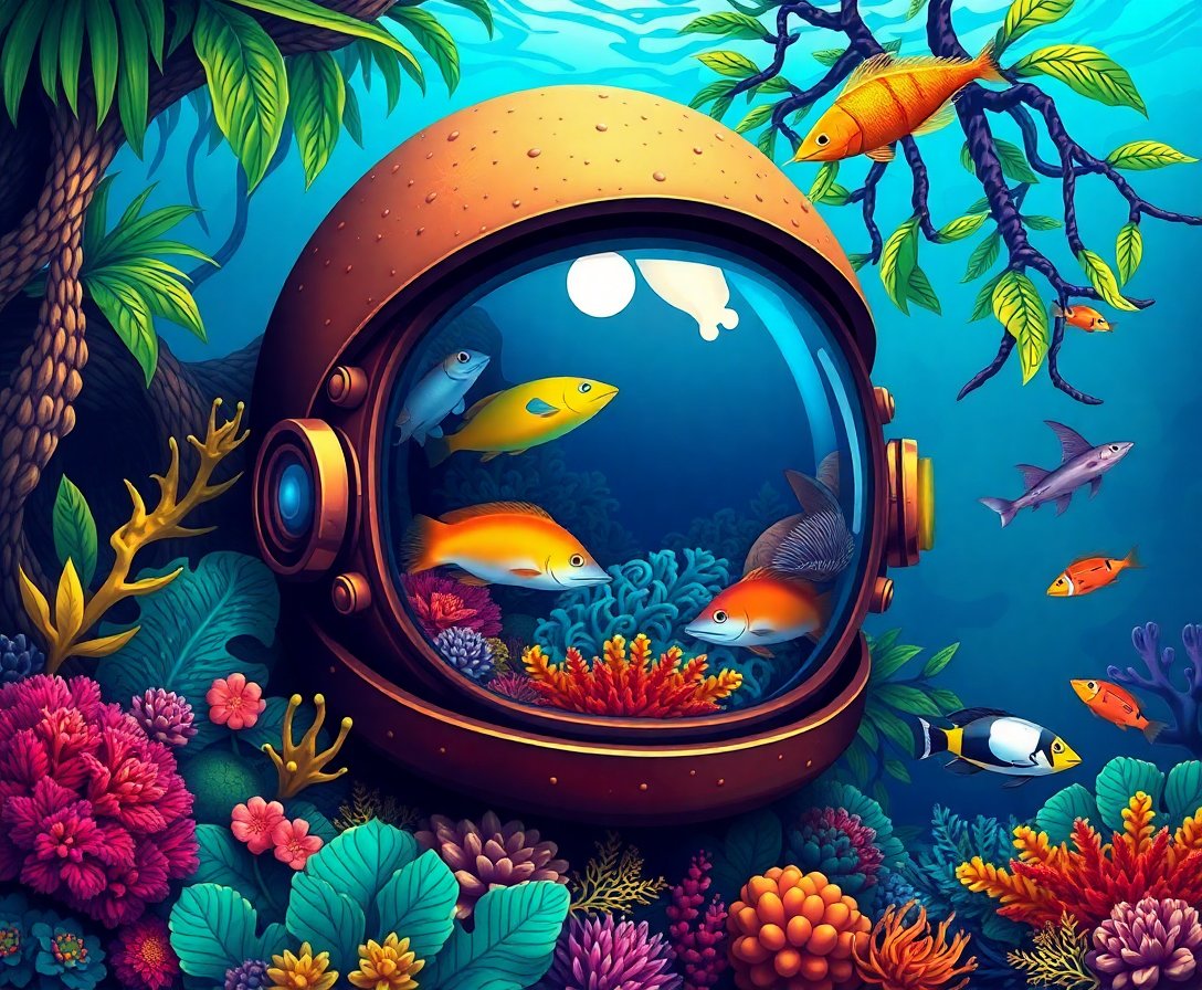Transform your space with this captivating underwater scene that celebrates oceanic wonder. This tropical helmet habitat design brings aquatic serenity and vibrant marine life into your daily environment through accessible artistic expression.