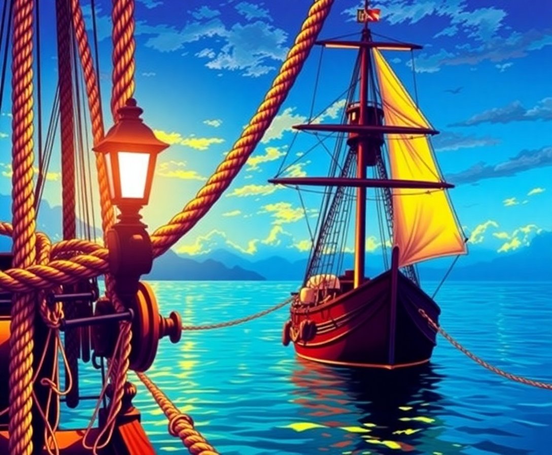 Therapeutic Benefits of This Sunlit Antique Galleon Ropes Paint By Numbers