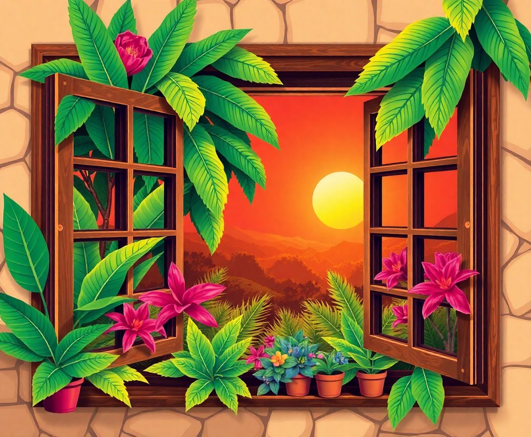 Transform your space with this captivating Sunlit Cacao Farm Window Paint By Numbers masterpiece. This stunning tropical landscape captures golden sunlight streaming through lush cacao pods, creating an idyllic pastoral scene. Additionally, this creative project brings the warmth of agriculture and tropical beauty directly to your walls.