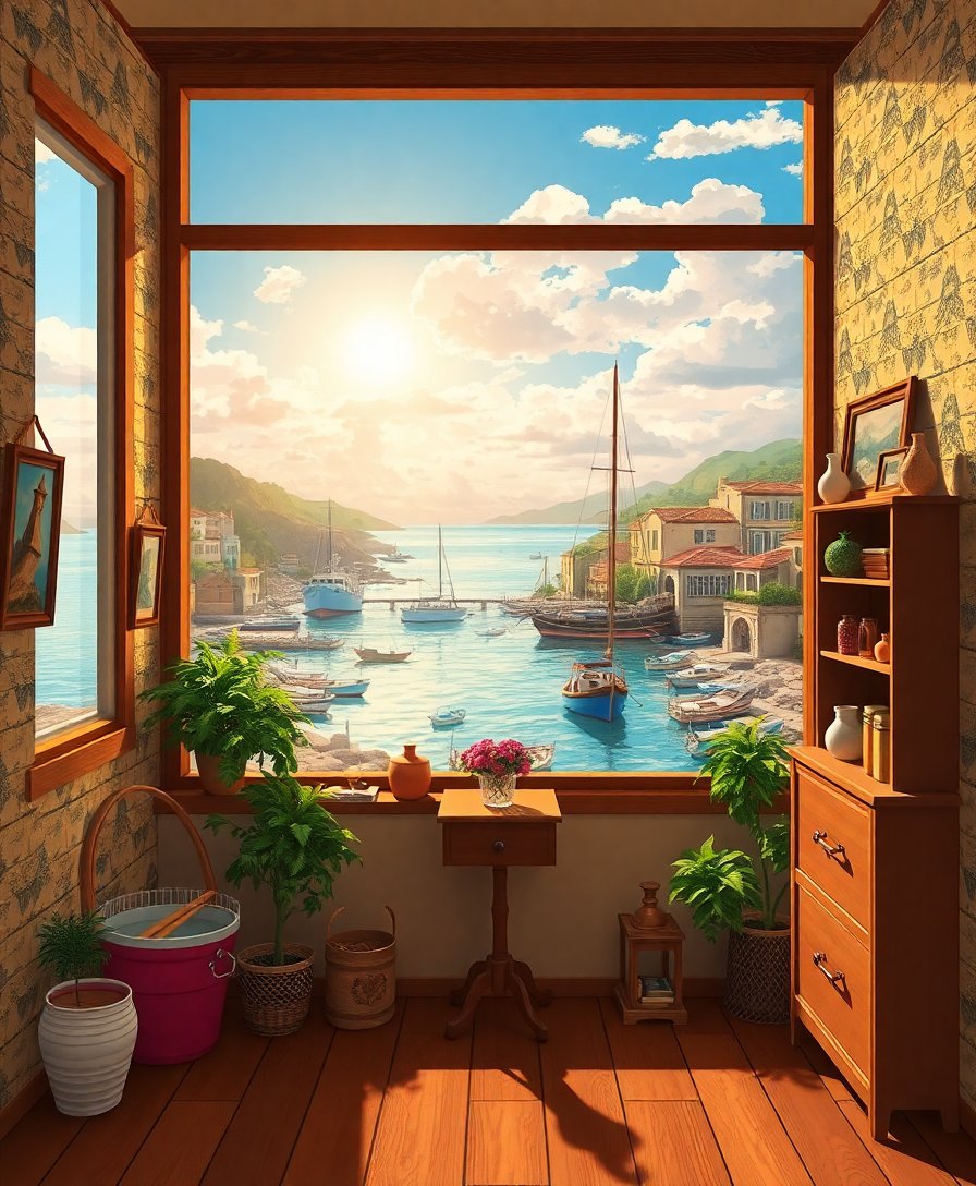 Sunlit Coastal Map Room Paint By Numbers