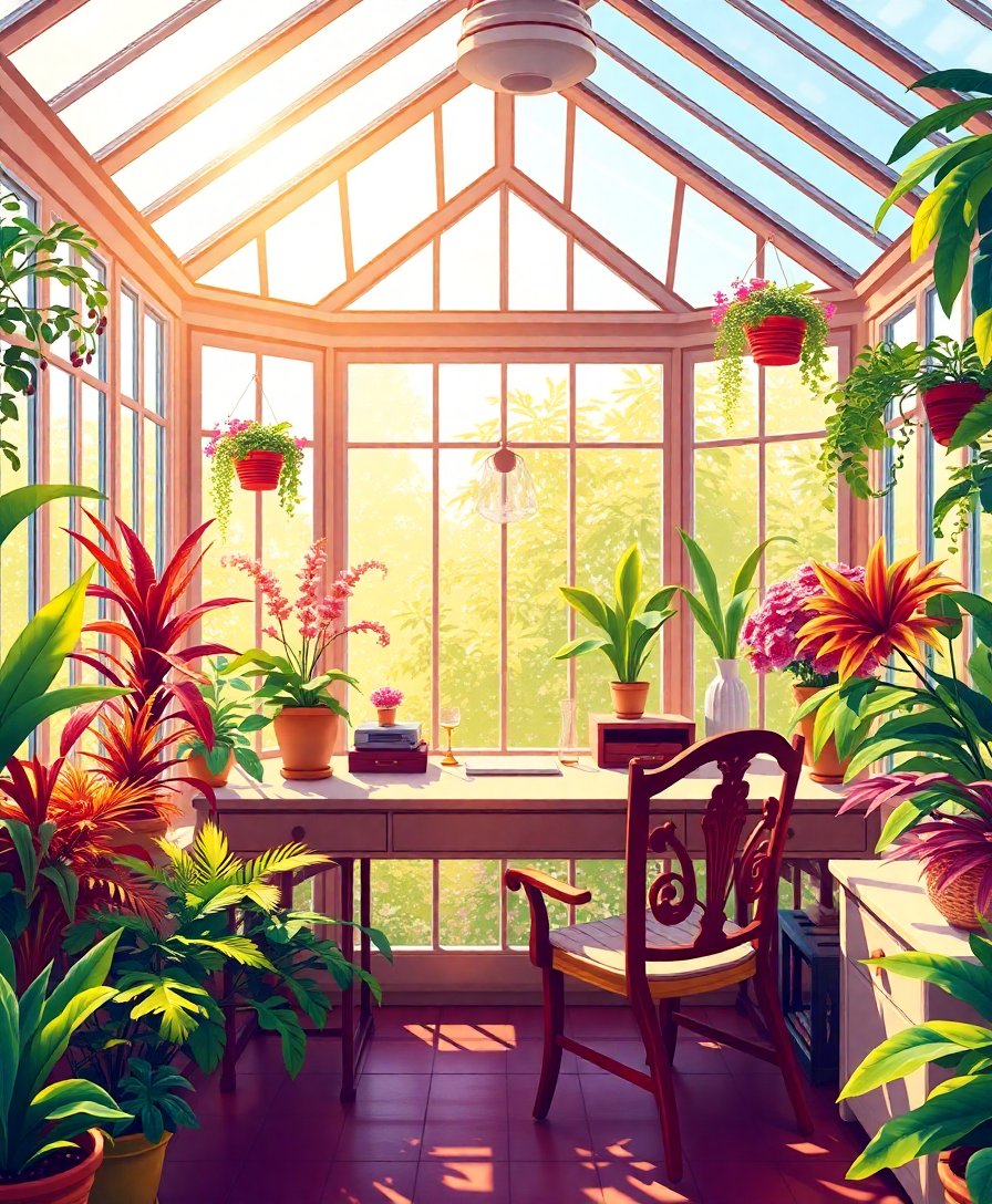 Sunlit Exotic Glasshouse Desk Paint By Numbers