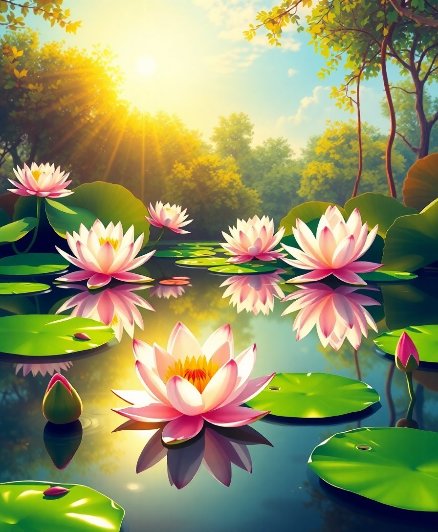 Transform your space with the enchanting beauty of landscape art through our Sunlit Lily Reflections Paint By Numbers kit. This stunning botanical masterpiece captures tranquil water lilies basking in golden sunlight. Each brushstroke brings you closer to creating your own serene pond scene.