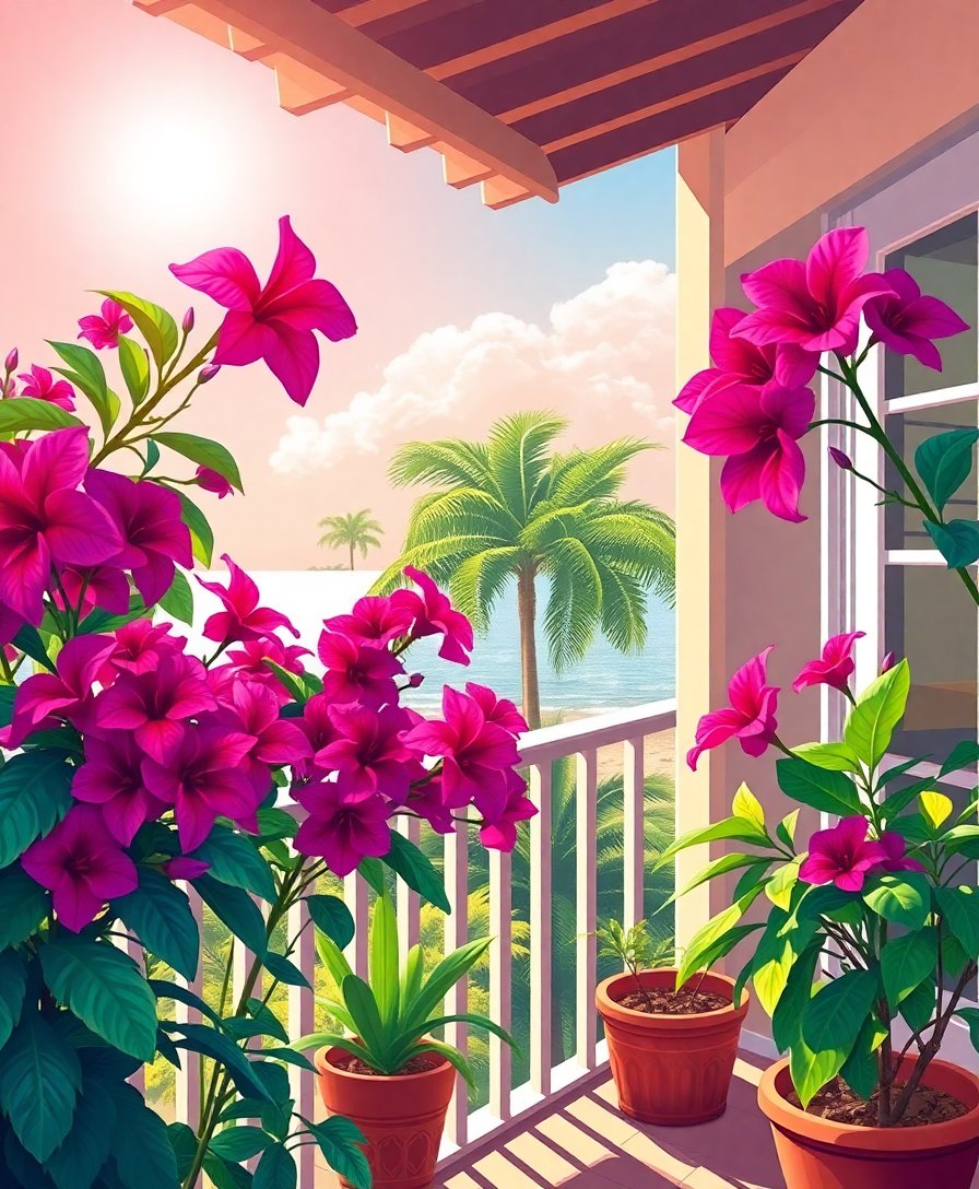 Sunlit Magenta Balcony Blooms Paint By Numbers