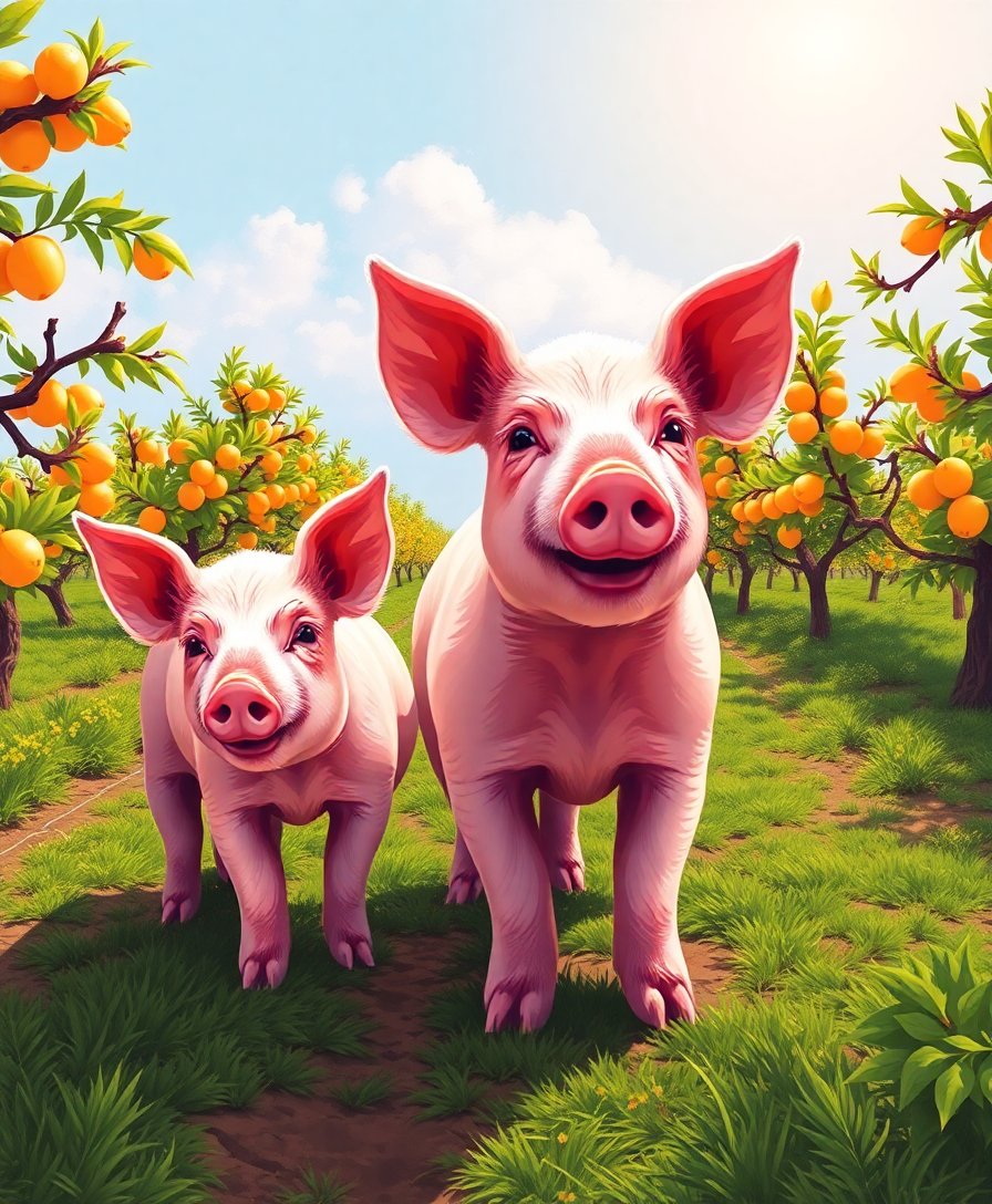 Subsequently, begin with the lighter sunlight tones and soft piglet highlights. Work from larger areas toward small details to build confidence. Because each section is clearly marked, your brush moves steadily. Soon, foliage, fruit, and swine textures grow richer with every layer.