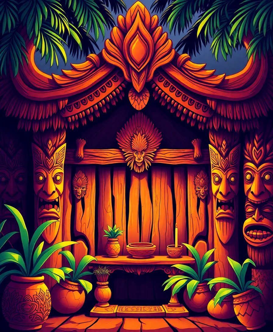 Subsequently, focus on the intricate wood grain patterns and carved details. Each section reveals authentic Polynesian craftsmanship through careful color placement. The realistic textures emerge naturally as you progress.