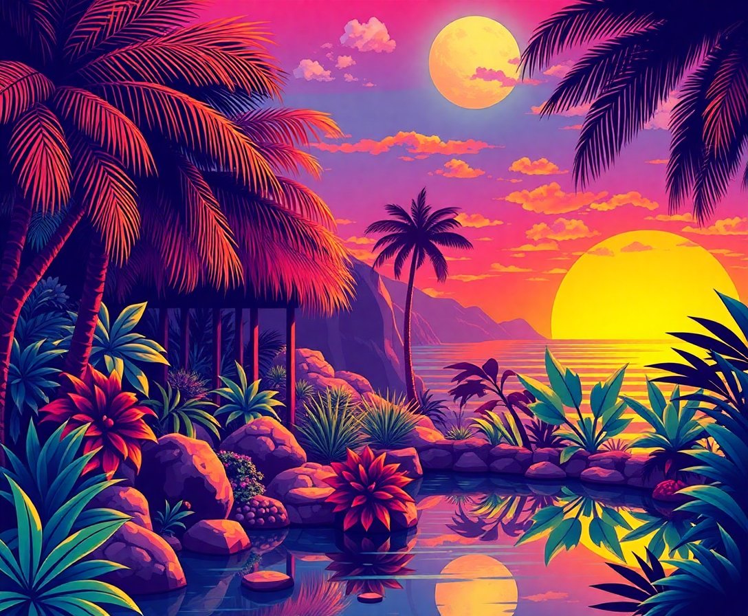 Transform your space into a nostalgic paradise with our Sunlit Retro Gaming Oasis Paint By Numbers masterpiece. This vibrant tropical scene combines classic gaming elements with warm coconut palm vibes. Perfect for enthusiasts seeking creative relaxation through pop culture artistry.