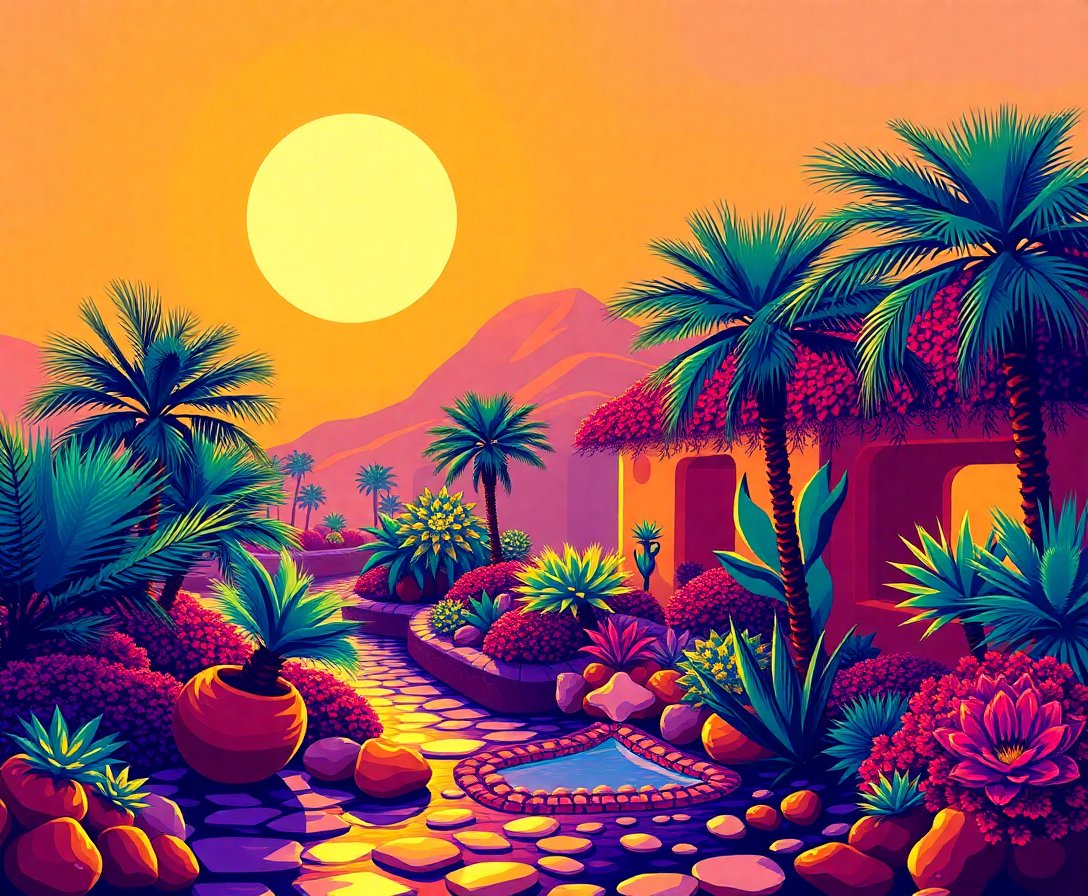 Therapeutic Benefits of This Sunlit Tropical Oasis Dates Paint By Numbers Experience