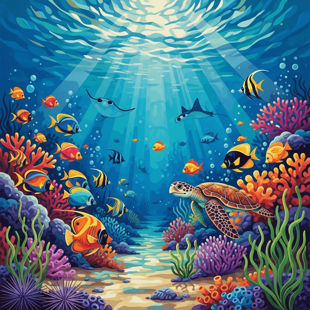 Dive into your artistic journey today and discover the tranquil beauty hidden beneath tropical waves. This creative masterpiece will transport you to serene underwater realms whenever you admire your finished work.