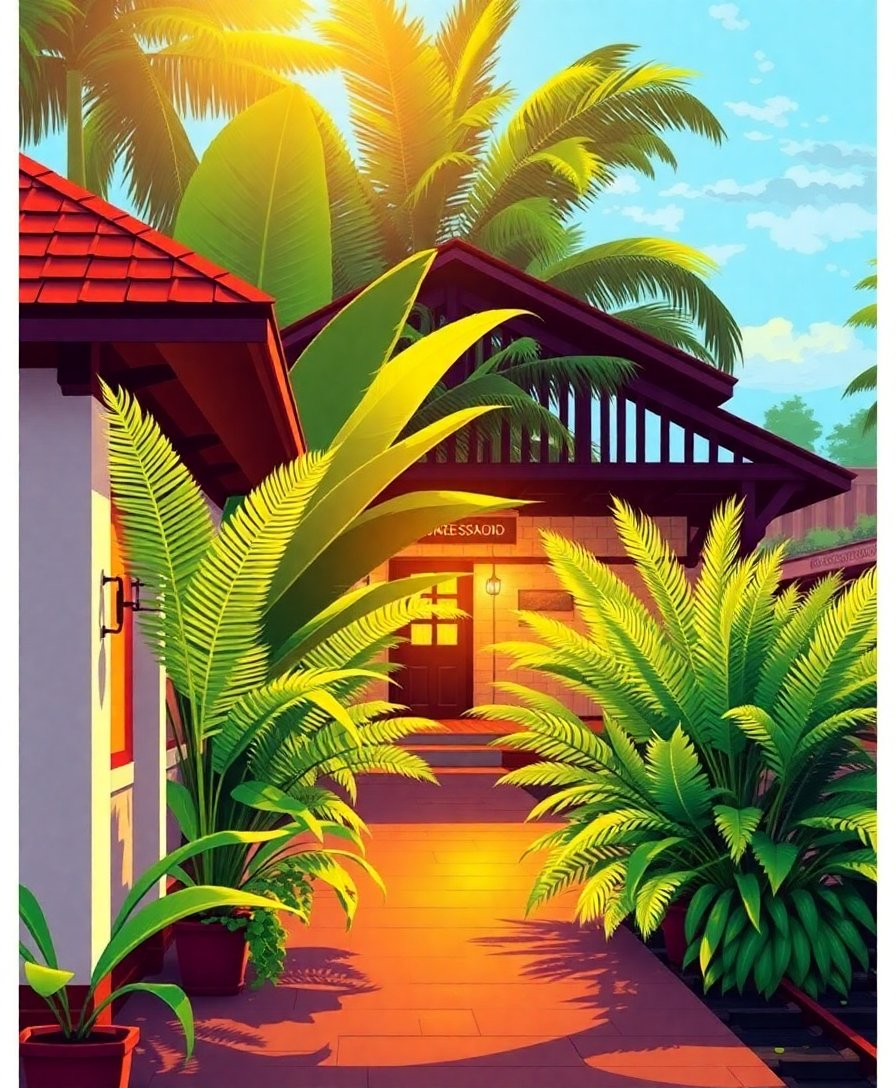 Experience the joy of creating your own tropical railway scene today. Additionally, this meditative painting process connects you with the timeless beauty of vintage transportation hubs surrounded by lush vegetation.
