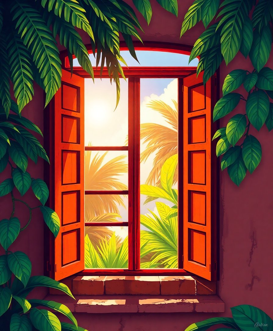 Sunlit Tropical Shuttered Window Paint By Numbers