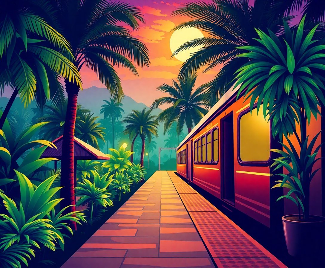 Therapeutic Benefits of This Sunlit Tropical Train Platform Paint By Numbers Experience