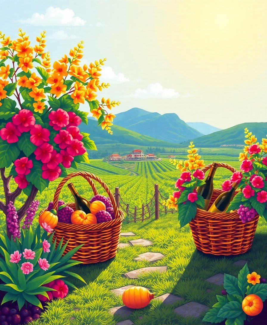 Sunlit Tropical Wine Baskets Paint By Numbers