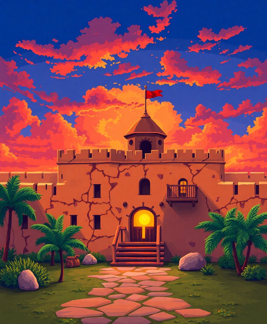 This design captures the authentic beauty of Caribbean colonial architecture with stunning pastel colors and vintage charm. The detailed fortress elements create an immersive artistic experience.
