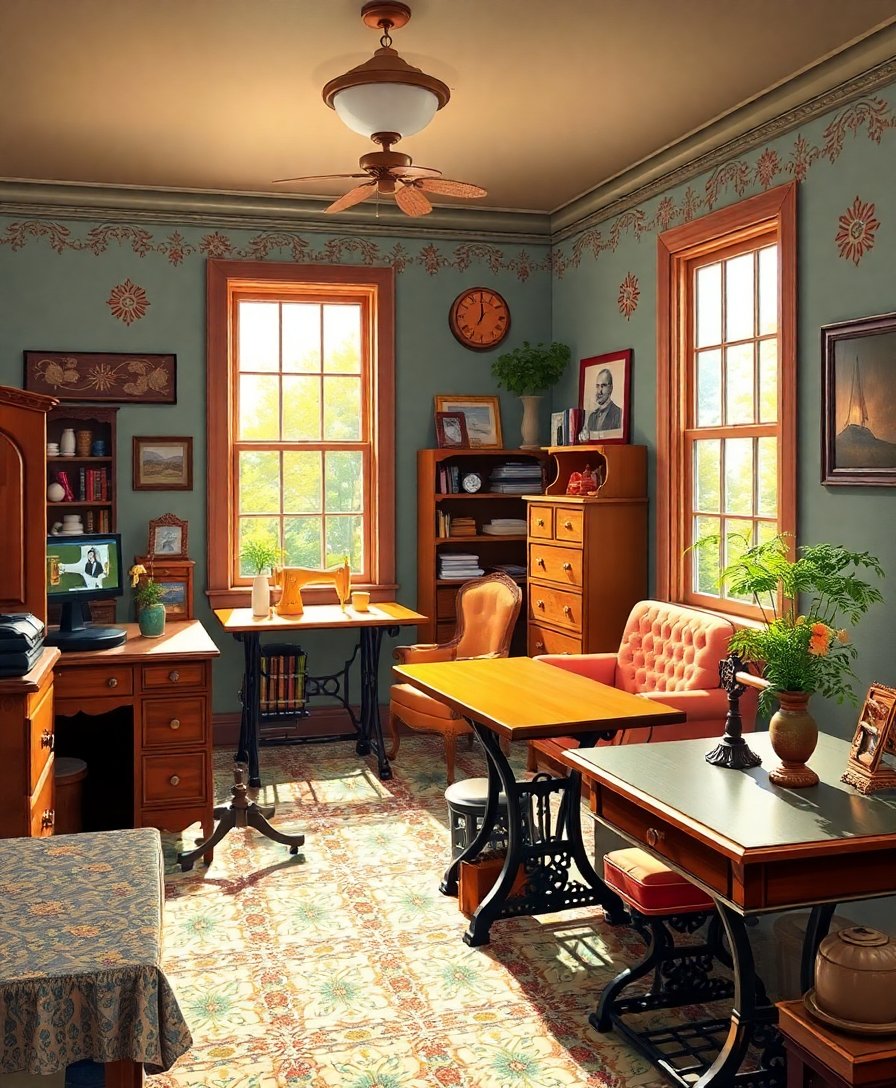 Therapeutic Benefits of Vintage Sewing Parlor Artwork
