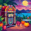 Subsequently, begin with larger background areas using broad brush strokes for palm shadows. Progress to detailed sections like the vintage jukebox features and tropical elements. Furthermore, layer colors gradually to achieve depth and vintage authenticity in your artwork.