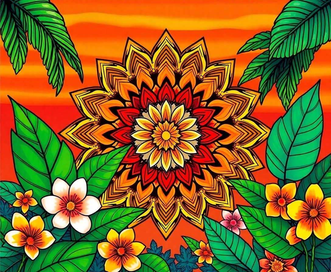 Finally, embrace the joy of creating your own tropical paradise. Start your artistic adventure today and discover the satisfaction of completing this beautiful mandala masterpiece.