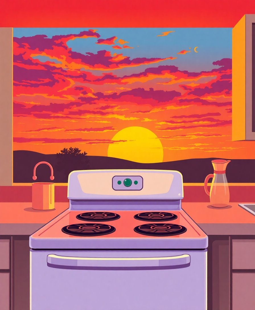 Complete Sunset Over Retro Stovetop Paint By Numbers Kit