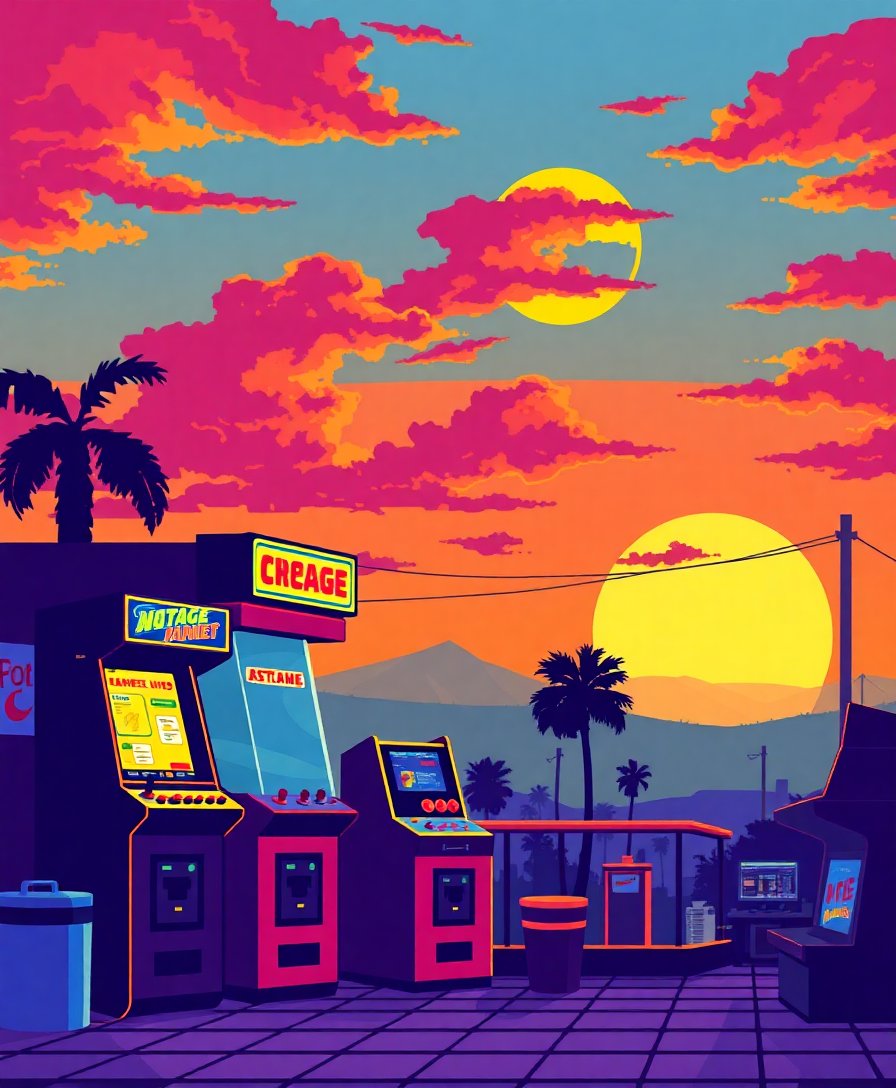 Ultimately, step back and admire your completed masterpiece with pride. Moreover, the vibrant sunset tones bring your vintage arcade scene to life beautifully. Consequently, your artwork becomes a stunning conversation piece.