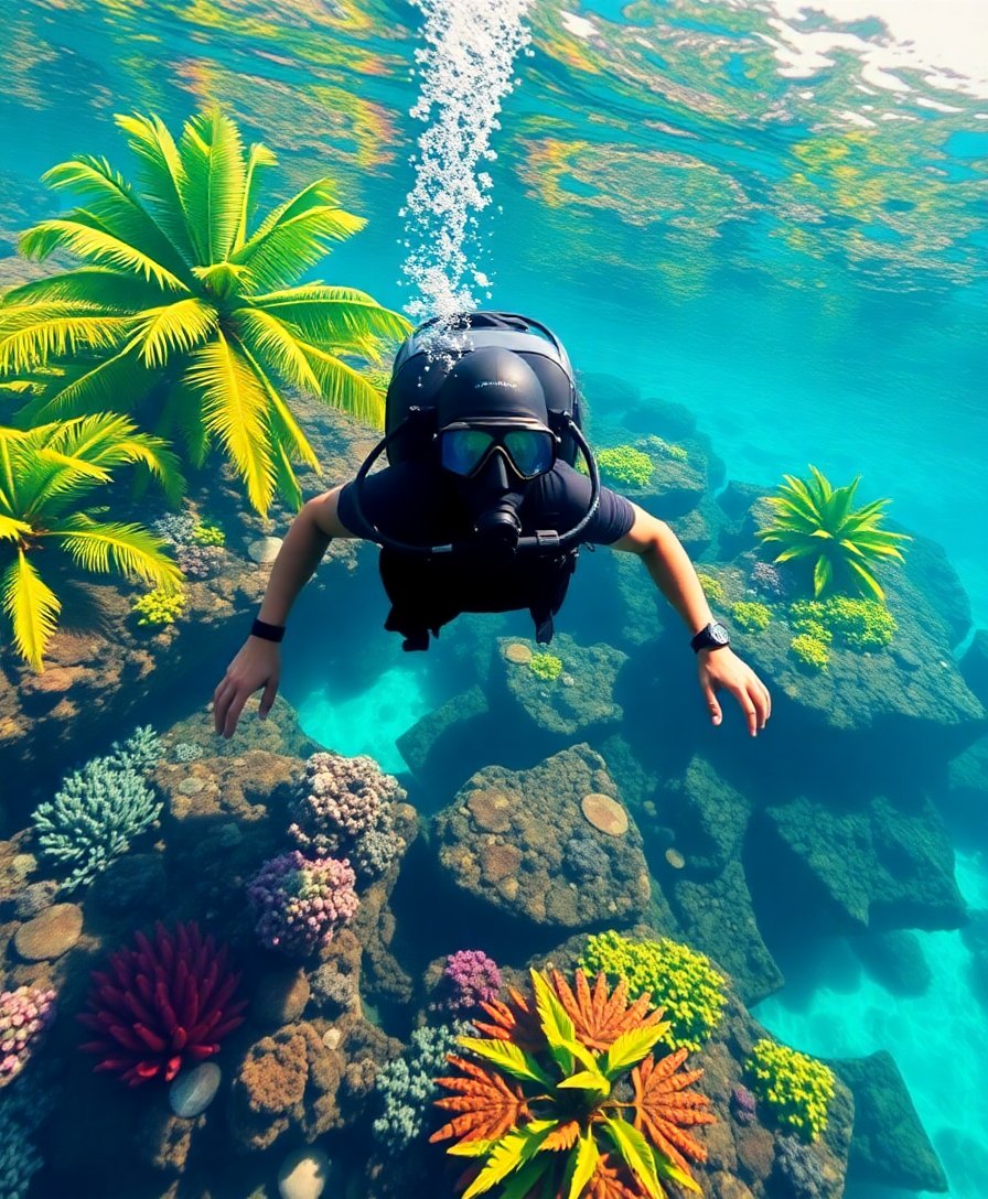 Ultimately, add finishing touches to small details and highlights. Consequently, your tropical diver scene comes alive with vibrant realism. Display your completed masterpiece proudly in any room.